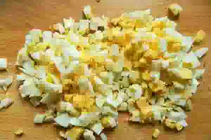 1. Вареные яйца очистить и мелко порубить.
