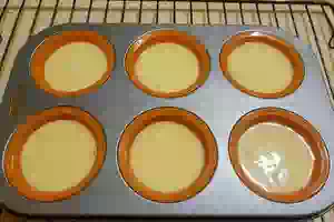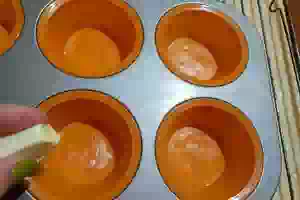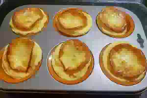 5. Поставить формы в духовку и выпекать порционный омлет при 200С. Через 30 минут он заметно увеличится в размере и пропечется. Готовый омлет, приготовленный в духовке, разложить по тарелкам и сразу же подавать к столу. По желанию печеный омлет можно гарнировать овощным салатом и соусом по вкусу.