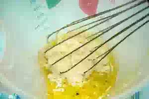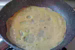 3. Размешать в яйцах крахмал, соль и перец. Развести яичную массу молоком.