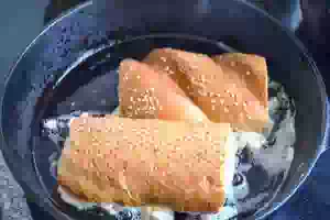 4. Порезать багет вдоль на 2 части и поперек на такие части, которые поместятся на сковородке.