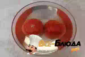 2. На помидорах сделать крестообразный надрез и залить их кипятком на несколько минут.