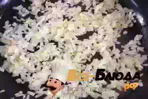 5. Обжарить лук на растительном масле до слегка золотистого цвета, сильно зажаривать не нужно.