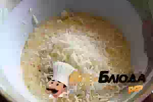 1. На разогретом растительном масле пассеровать мелко нарезанный репчатый лук. Добавить порезанный пластинами чеснок и прогреть, помешивая, еще пару минут.