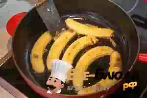 3. Спелые очищенные бананы разрезать пополам вдоль и обжаривать с двух сторон на сковороде с растительным маслом, пока не появится золотистая корочка.