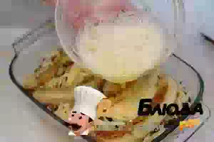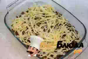 6. Посыпать фарш измельченным на крупной терке сыром.