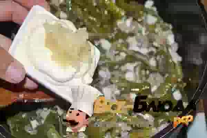 4. Включить духовой шкаф на 200С. Очистить чеснок, измельчить и отправить с майонезом в кастрюлю с фасолью. Перемешать и тушить около минуты.