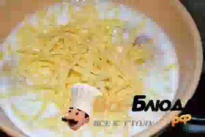 6. Взбить молоко с яйцом, добавить специи и тертый сыр, перемешать.