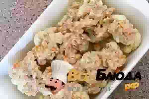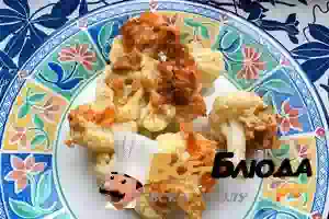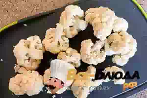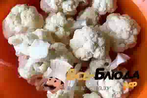 1. Цветную капусту, очищенную от зеленых листьев и грубой нижней части, разобрать на соцветия. Погрузить их в очень холодную соленую воду, чтобы избавиться от мошек и червяков, прячущихся среди гроздьев.