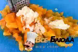 4. Добавить сливочный сыр, загустить с панировочными сухарями.