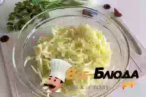 5. Добавляем мелко рубленую зелень (петрушку или укроп) и нарезанную небольшими кусочками ветчину.