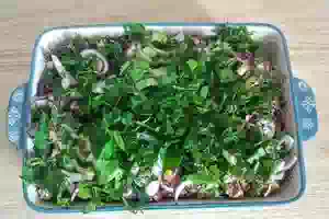 5. Пучок зелени промываем, просушиваем на бумажном полотенце и мелко рубим.