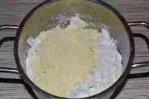3. Перемешайте кукурузную муку с творогом.