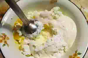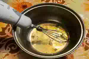 5. Лопаткой аккуратно вымешиваем полученное тесто до равномерной консистенции. Мешать следует круговыми движениями сверху вниз, чтобы сохранить воздушную структуру массы.