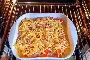 6. Поставить форму с запеканкой в разогретую до 190С духовку на 25-30 минут. Затем достать запеканку из формы, посыпать отложенным тертым сыром и вернуть обратно еще минут на 5, чтобы сыр расплавился, и на запеканке появилась аппетитная сырная корочка. Запеканку из куриного филе с сыром и помидорами оставить в форме, чтобы она немного остыла, и можно подавать на стол с любым гарниром на ваш вкус.