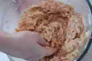 5. Добавить панировочные сухари, но не все. Примерно 1-2 ст.л. сухарей отложите в сторону, их будем использовать для посыпки формы и для хрустящей корочки. перемешать и, если надо, еще немного посолить.