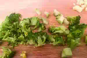 2. Отдельно бланшировать 5 минут в подсоленном кипятке разобранную на маленькие соцветия капусту брокколи.