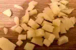 4. Твердый сыр нарезать маленькими кубиками или натереть на крупной терке.