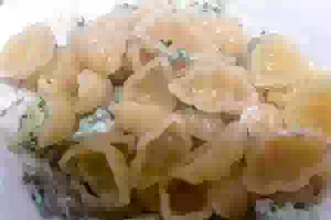 1. Отварить макароны в подсоленной воде до состояния аль денте. Откинуть на дуршлаг, чтобы вода полностью стекла.