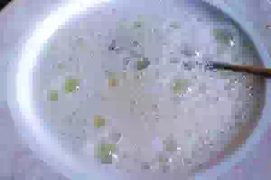 5. Белки взбила с солью и добавила в смесь.
