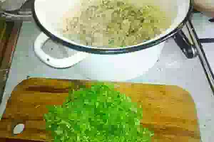 4. Соединила кашу, зелень и желтки.