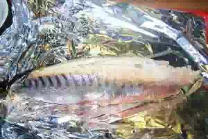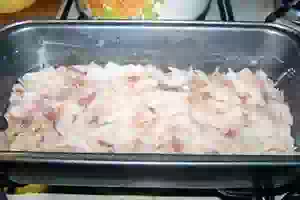 2. Копченую скумбрию разбираем на филейные кусочки.