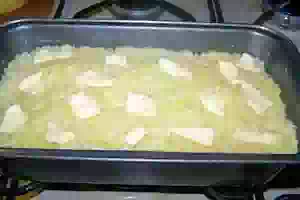 5. Закрываем слоем риса и втыкаем кусочки сливочного масла.