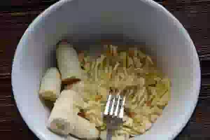 11. Дать творожной запеканке с бананами остыть в форме, затем нарезать на порции.