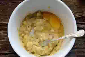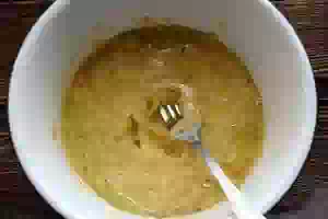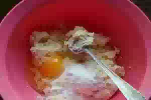 4. В банановое пюре вбить яйцо, хорошо перемешать.