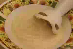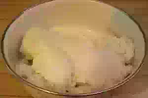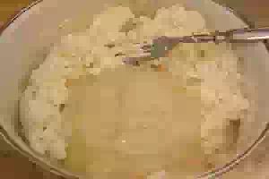 1. Смешать творог, сахар и манку. (Если творог сухой, можно добавить немного сметаны.)