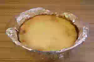 Готовую бананово-творожную запеканку вынуть из духовки, остудить в форме (холодную запеканку легче отделить от фольги).