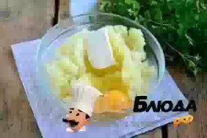 2. К еще горячему картофельному пюре добавьте яйцо и сливочное масло, хорошенько размешайте. Если нужно, добавьте немного соли (если не добавляли ее, когда картофель варился).