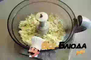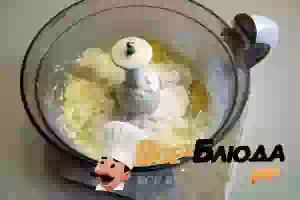 2. Сначала нужно измельчить максимально творог. Для этого воспользуйтесь блендером или теркой.
