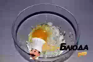 1. В миску положите творог. Вбейте одно куриное яйцо.