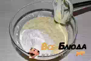 5. Всыпьте просеянную муку с разрыхлителем. Еще раз взбейте блендером.