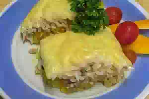 Рисовая запеканка с консервированной рыбой